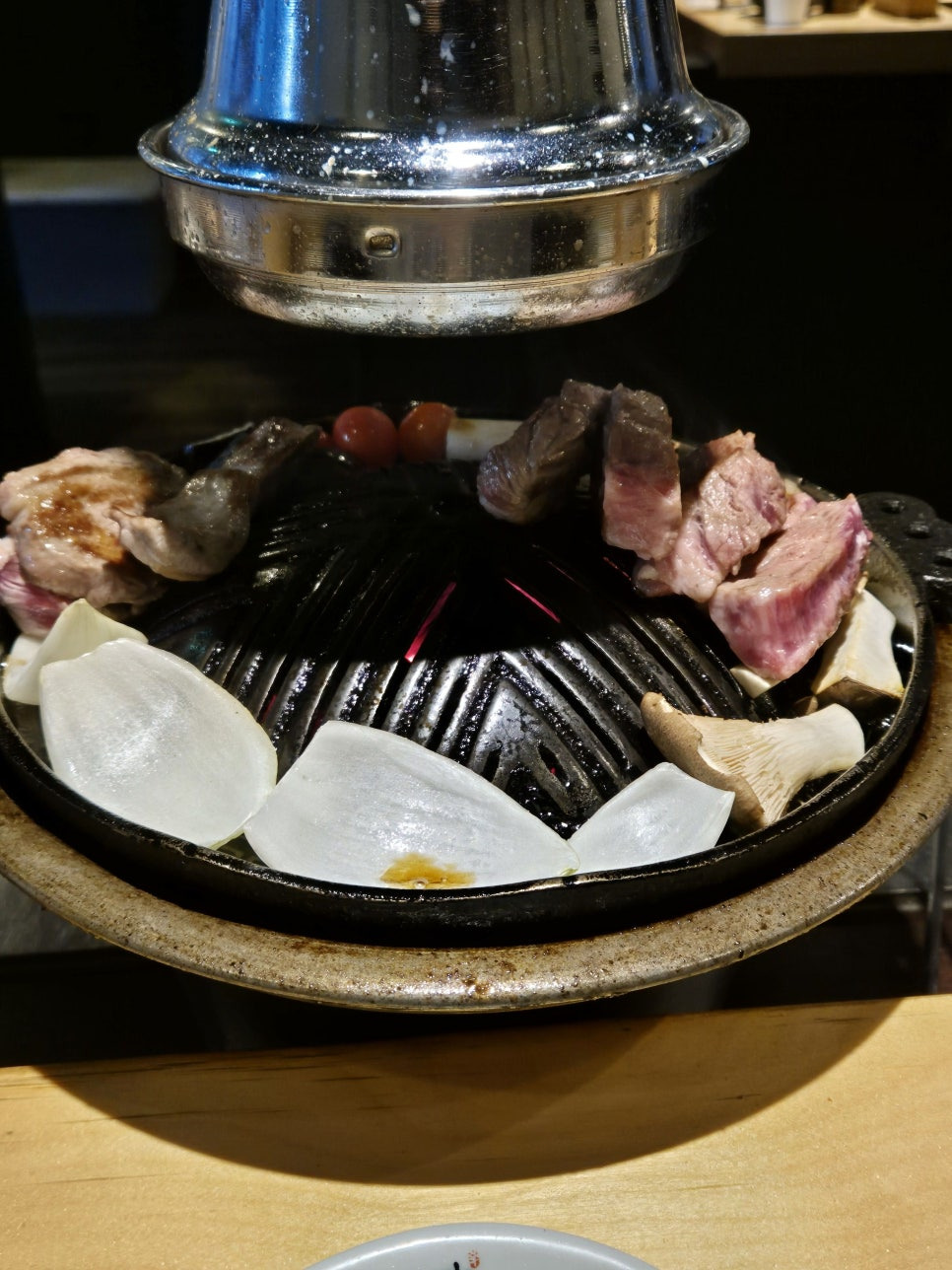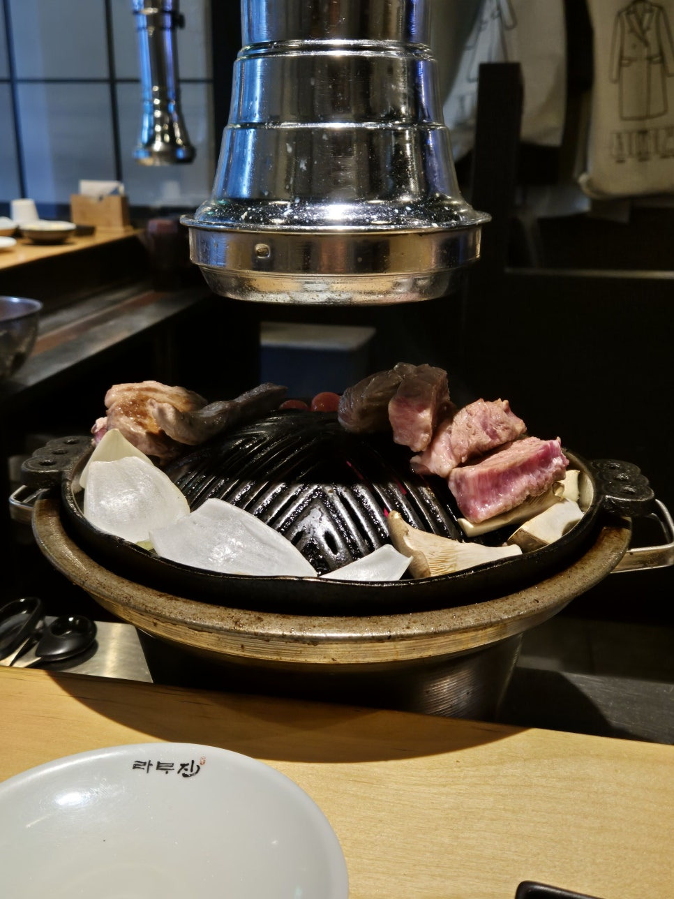 불판먼저 올려주고 고기 올려줌